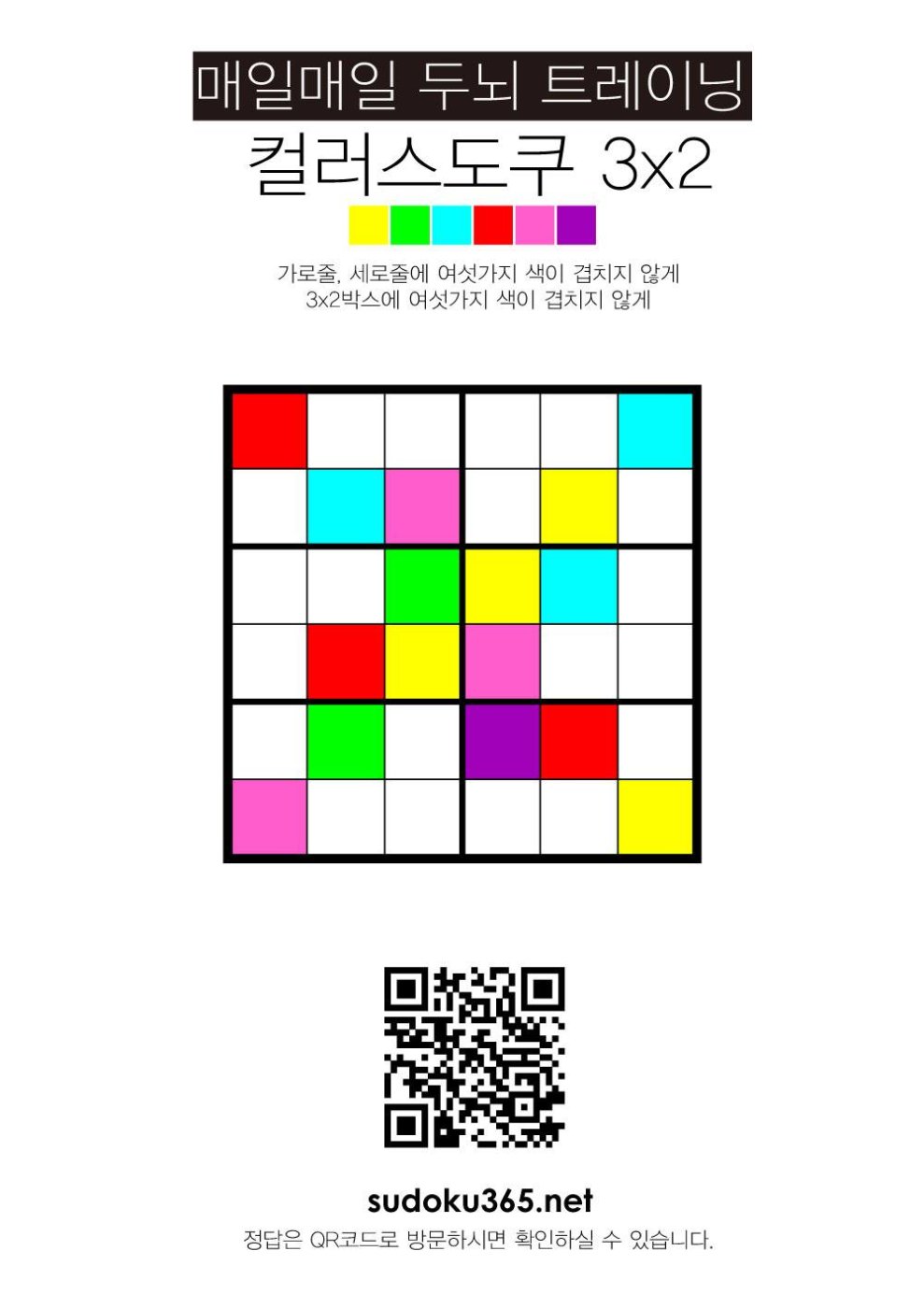 Continue reading컬러링 스도쿠 3×2… 12색컬러 색연필이 집에 있다면 숫자대신 색칠을 하면서 두뇌 훈련을 해보세요… 숫자가 아닌 것만으로도 갑자기 다른 퍼즐이 됩니다.…