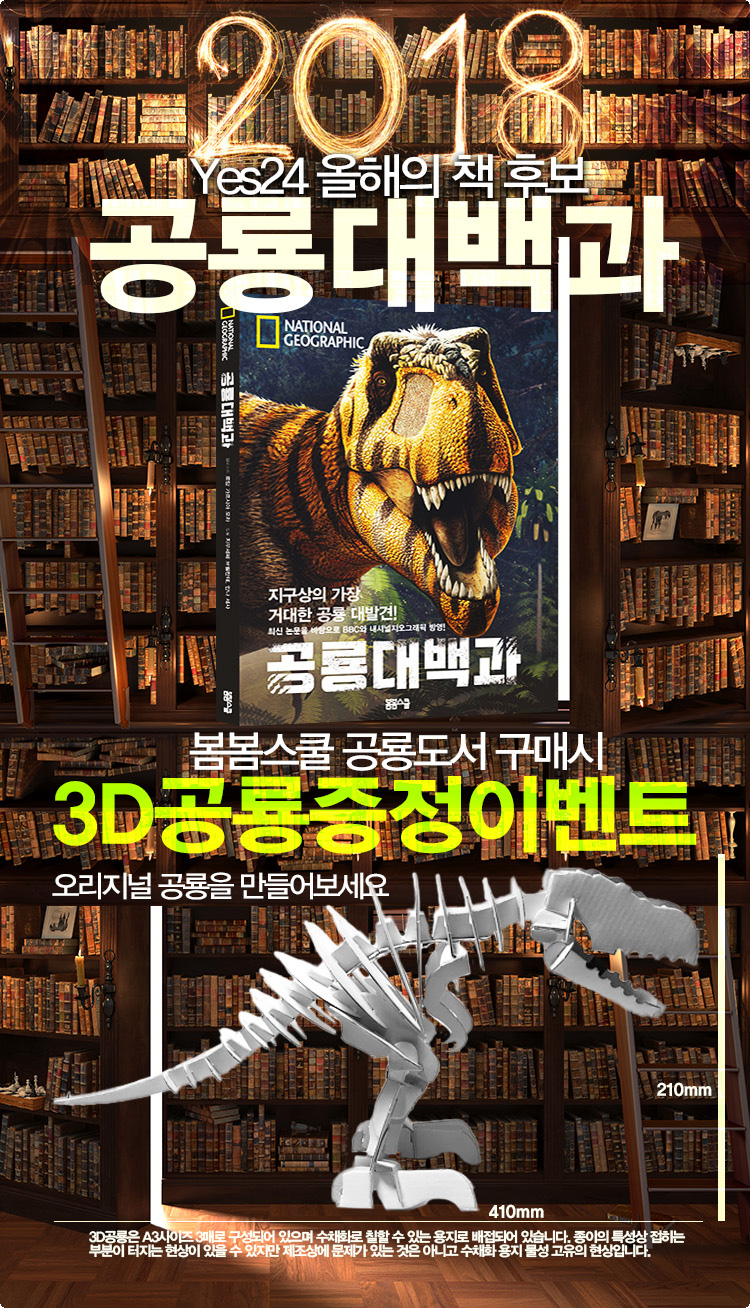 Continue reading공룡대백과 수채화가 가능한 3D공룡 증정이벤트 Yes24에 2018년 올해의 책 후보로 내셔널지오그래픽 공룡대백과가 선정되었습니다. 기념으로 원래 따로 책을 준비하던 페이퍼그래프트 다이노소어를…