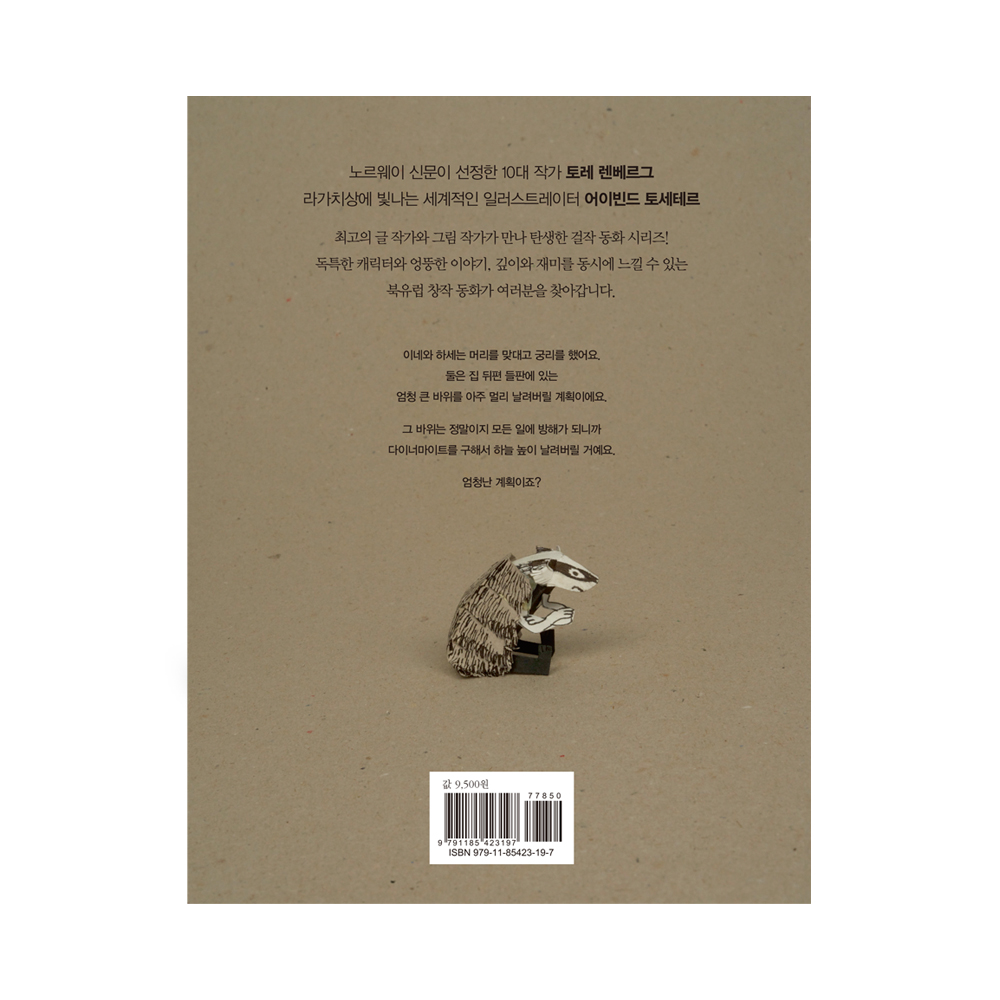 계획이죠?다이너마이트 소동은 노르웨이 대표 작가인 토레 렌베르그와 세계적인 일러스트레이터 어이빈드 토세테르가 힘을 합쳐 만든 창작 동화입니다.