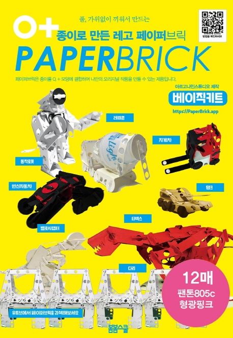 - 『종이로 만든 레고 페이퍼 브릭』은 종이공작에서 한층 더 발전한 3D 종이공작을 할 수 있는 제품입니다. 두꺼운 종이를 O, + 모양에 결합하여 나만의 오리지널 작품을 만들 수 있습니다. 칼선이 되어 있는 2가지 형태의 패턴으로 레미콘, 동작로봇, 지게차, 오토바이, 변신자동차, 건설장비, 탱크, 로봇 변신자동차, 벨로시랩터, 티렉스 등 다양한 장난감과 공룡모양을 만들 수 있으며, 마스크와 결합하여 로봇 마스크를 만들 수 있고 실용성 있는 제품도 만들 수 있습니다. 마치 시중의 “레고”라고 불리는 블록과도 결합하고 떼어내고 새로운 모양을 만들 수 있습니다. 혹시 어려울까 겁을 필요가 없어요! 도안은 기본 설명과 함께 유튜브에 새로운 모델을 계속 올리고 있어 다른 친구들이 만든 작품도 함께 만들어 볼 수 있습니다.