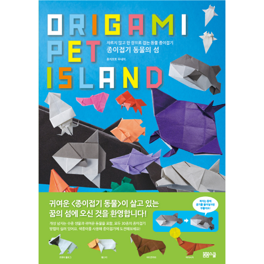프렌치 불도그, 앵무새, 큰부리새, 달팽이, 수달, 고양이 등의 다양한 동물을 담았습니다. 이 모든 생물들은 한 장의 색종이로 자르지 않고 만들 수 있습니다. 특히 복어는 등에 공기를 불어넣으면 부풀기 때문에 꼭 접어야 할 작품입니다.