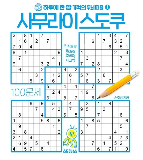 스도쿠는 세계적으로 가장 유명한 퍼즐 중 하나이자 대표적인 두뇌 훈련 게임으로 각광 받은 지 오래다. 때문에 많은 마니아를 양산했고 이들 중 스도쿠 고수들은 보다 난이도가 높은 스도쿠를 찾아다니게 됩니다. 고난도의 스도쿠 문제를 풀었을 때의 짜릿한 쾌감에 중독되면 헤어나기 힘들기 때문입니다. 퍼즐은 인지능력, 집중력, 논리사고력을 키워주며 풀이 하나하나의 과정 속에서 생각의 즐거움을 느끼게 됩니다. 때문에 스도쿠는 퍼즐 마니아의 기대의 발맞춰 여러 형태로 변형, 발전해가고 있는 실정입니다.사무라이 스도쿠는 미국과 유럽 등에서 가장 주목받고 있는, 더욱 강력해진 스타일의 새로운 스도쿠 퍼즐로 5개의 스도쿠 문제가 서로 결합한 형태의 사무라이 스도쿠는 그 모양이 사무라이의 옷과 비슷하다고 해서 붙여진 이름입니다. 기존 스도쿠보다 난이도는 높지만 재미 또한 몇 배이기 때문에 전 세계 스도쿠 마니아들에게 각광을 받고 있습니다.