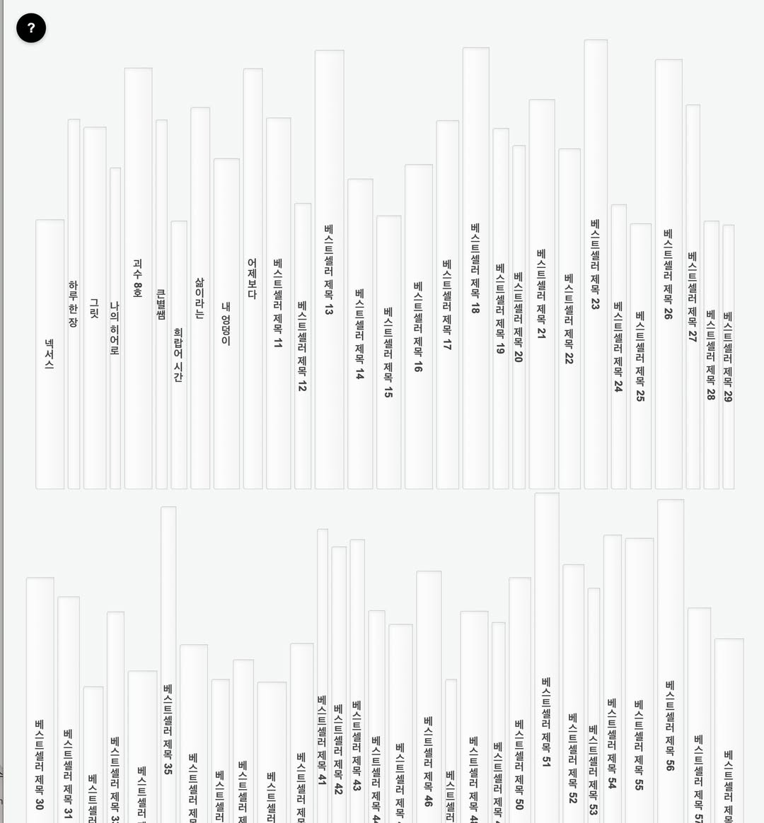 홈페이지를 아예 다른 방식으로 바꾸려고 하고 있습니다. 책등이랑 박스에 담은 책 진열하는 방법에 대해서 고민을 하다가 데이터가 빠져있는 현실을 어떻게 할 수 없으므로 그 빈공간을 다른 방식으로 채울 생각입니다.