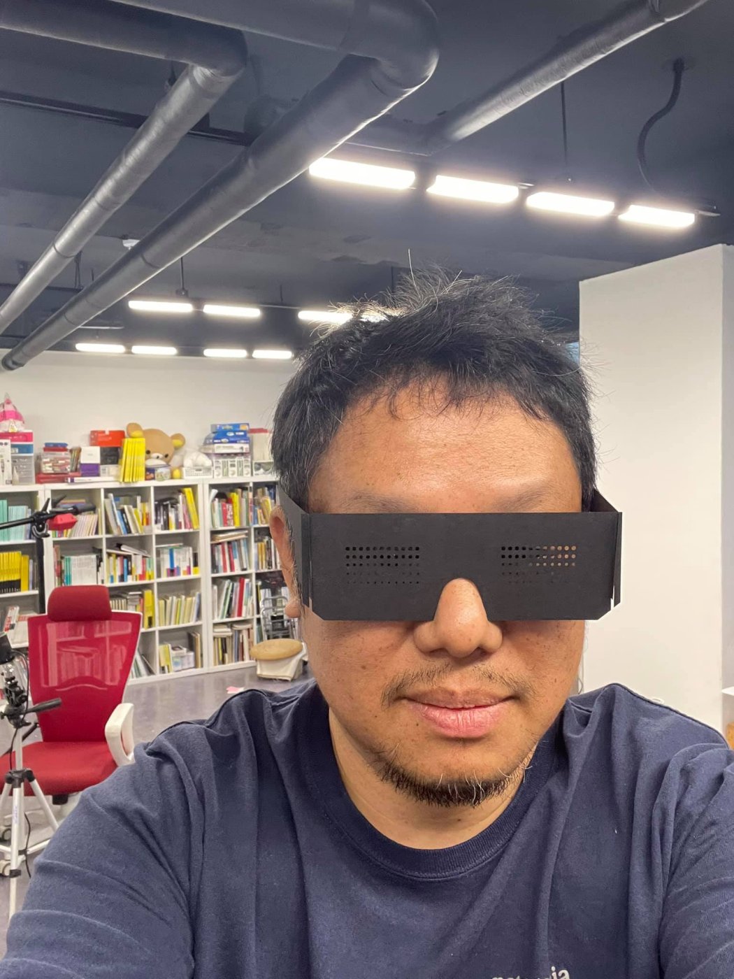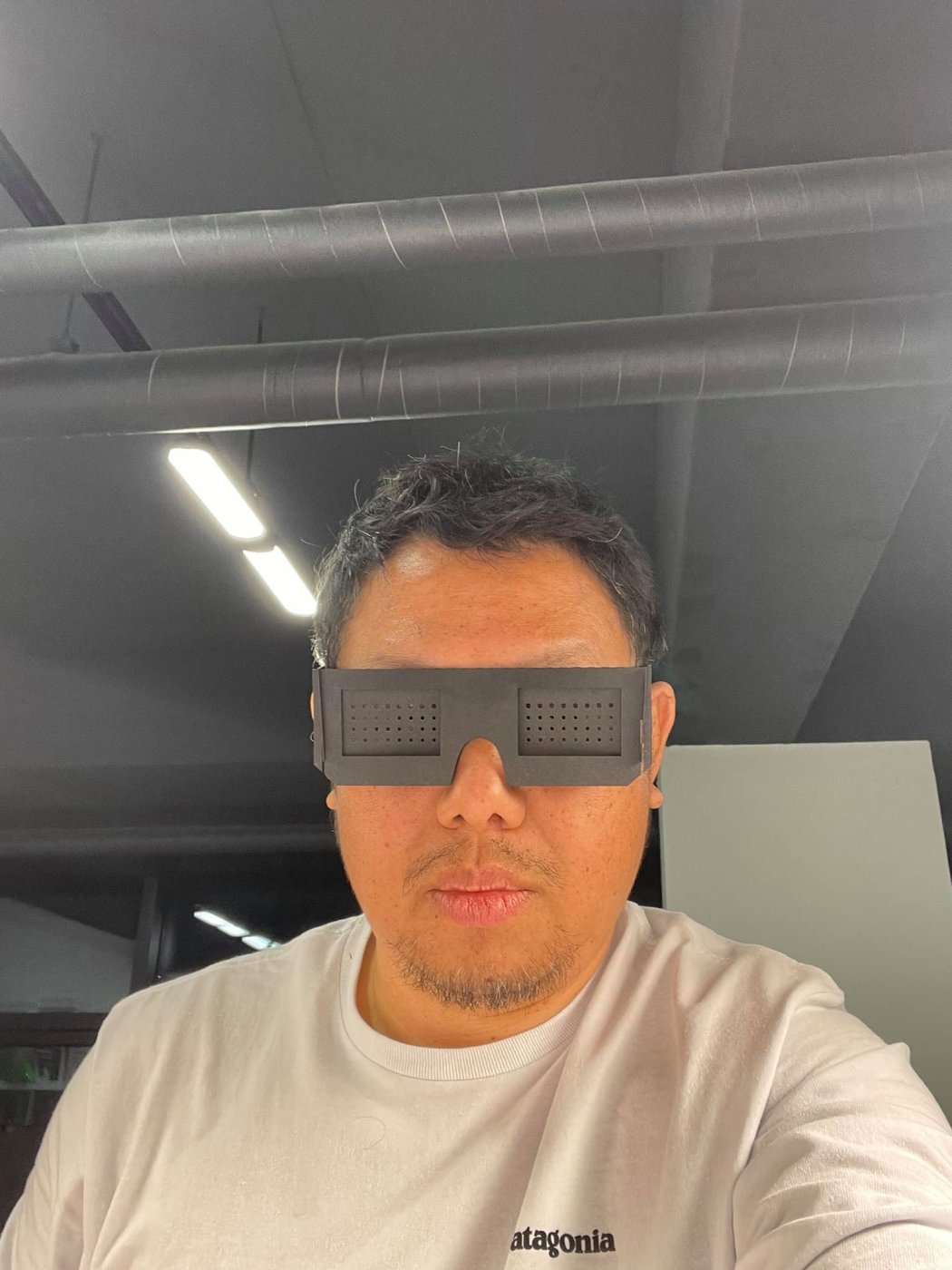 그러다 어릴 때 하던 핀홀을 이용해서 선명하게 볼 수 있다는 생각을 하고 어디선가 봤던 시력이 좋아지는 안경? 같은 것을 만들어 보기로 했습니다. 구멍은 0.5~ 2 까지 뚫어 시점을 다양하게 볼 수 있도록 하고 일정 간격으로 뚫어 시야 확보 및 빛가림으로 간섭하는 현상을 최소화 하도록 조정했습니다.