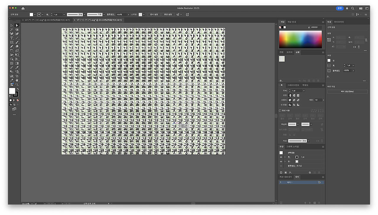 다른 프로그램은 이상없이 열리는데 SVG를 만든 어도비가 막고 있어서 그 부분에 대한 고민과 inkscape, fontforge 를 자동화해서 배열하는 자동처리를 하다가 일단 멈췄습니다.