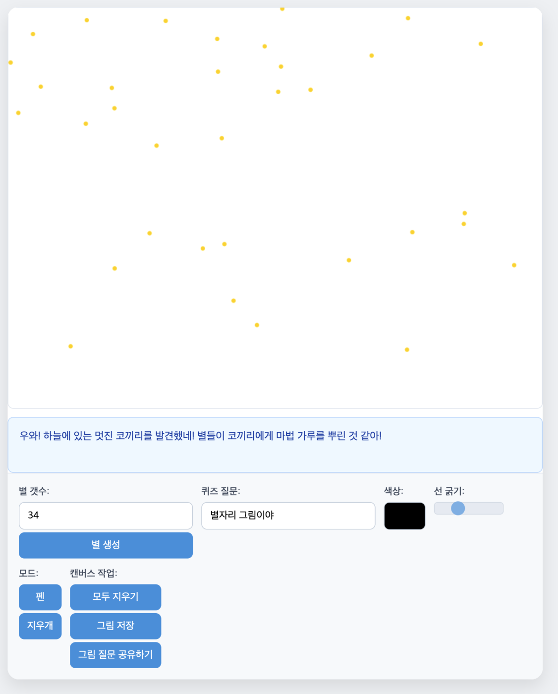 아이들 낙서를 하면 낙서된 선에서 다시 별자리를 찾는 프로그램을 하고 있습니다.