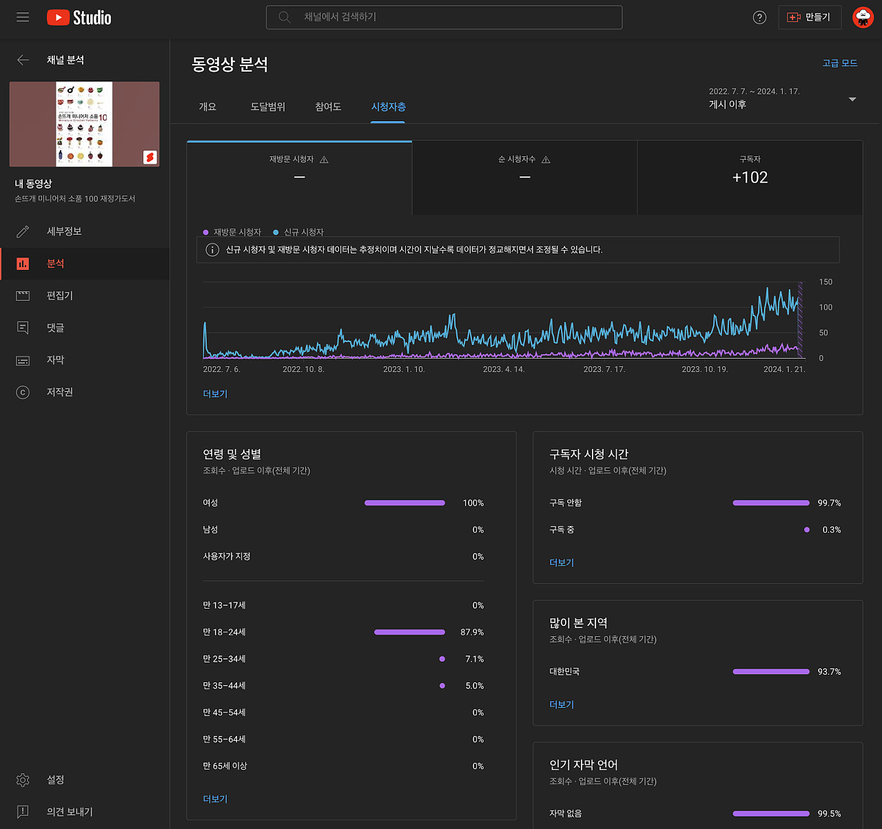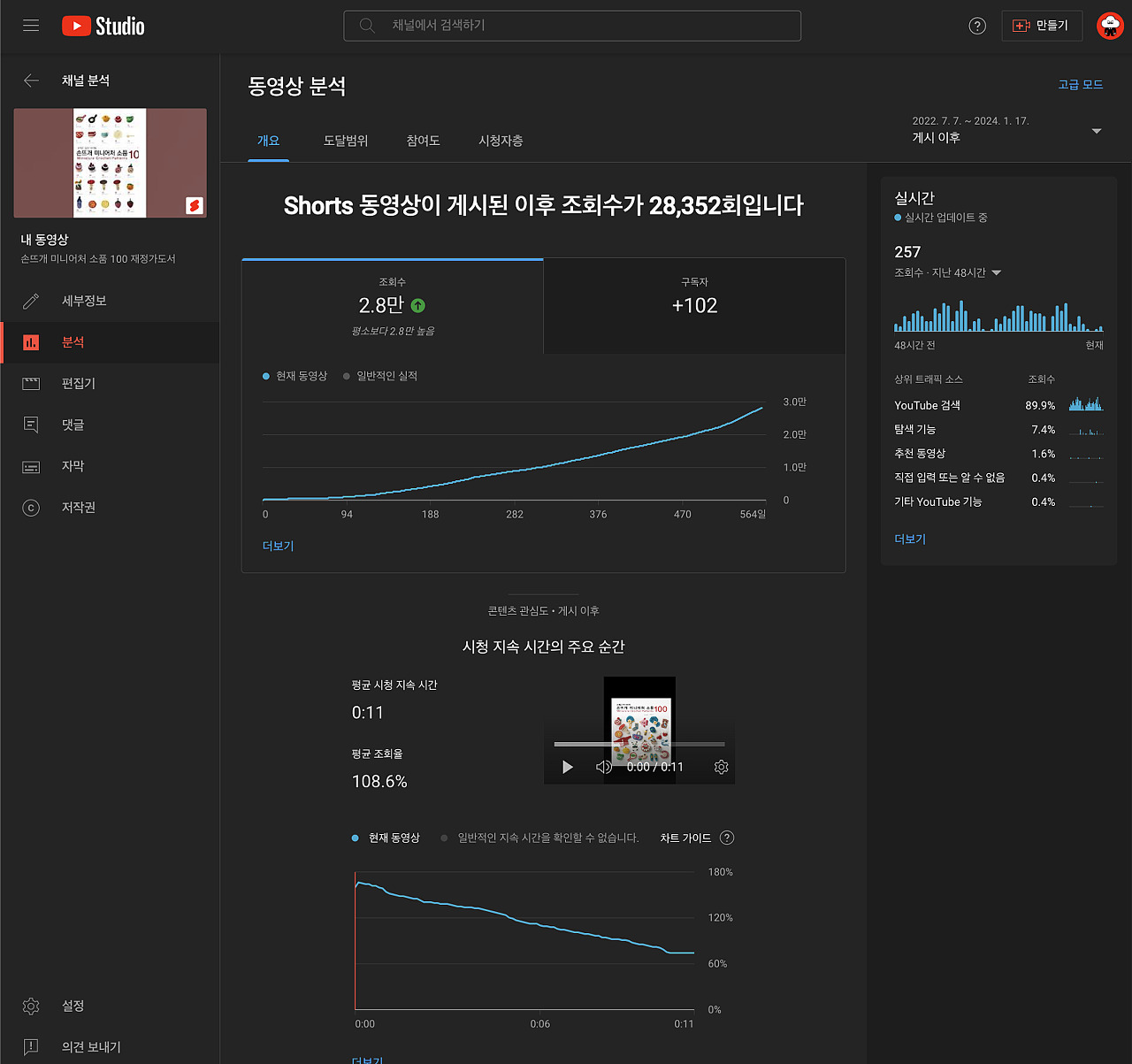 그런데 2022 7.7 일 ~ 오늘까지 꾸준히 이 영상 하나로 구독자를 늘리고 재쇄를 이끌어냅니다.
