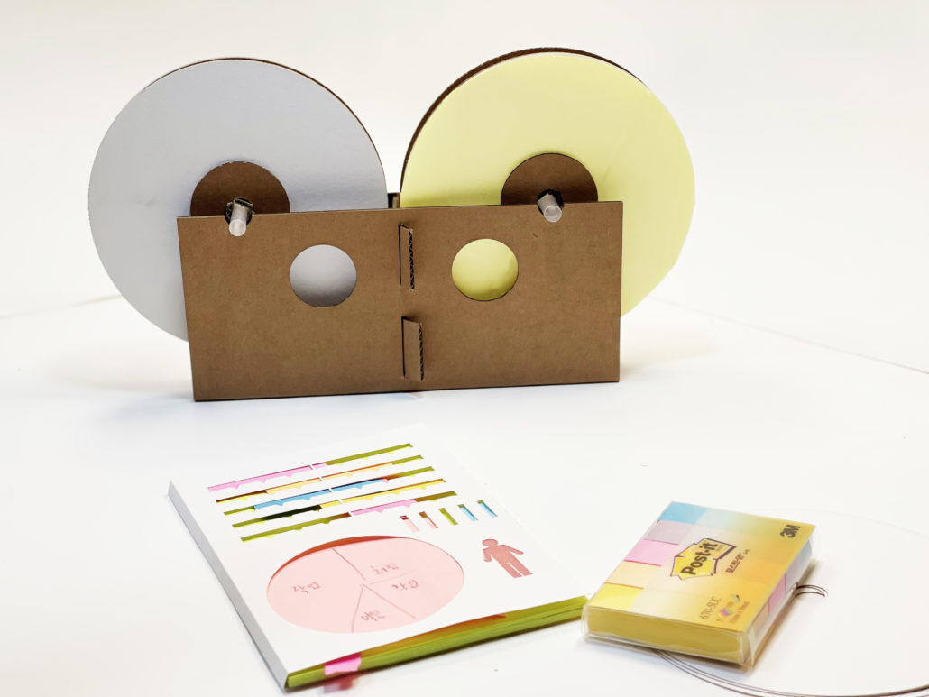 페이퍼브릭시리즈의 문구버전입니다. 디스크형태의 용지와 그것을 어떤 용도로 사용하느냐에 따라 달력, 문구, 놀이, 게임, 공부 등 다양한 형태로 사용할 수 있는 아이디어를 제품으로 확정지었습니다.