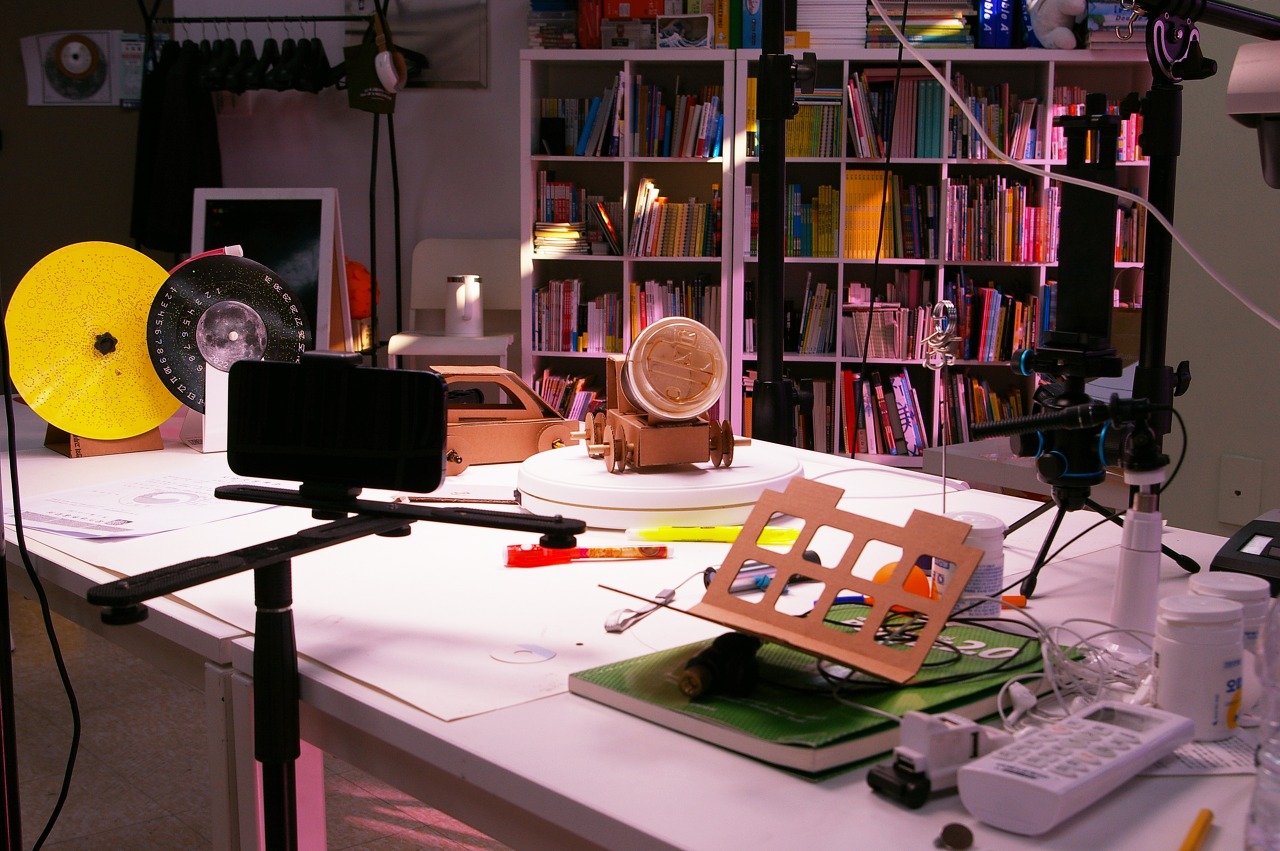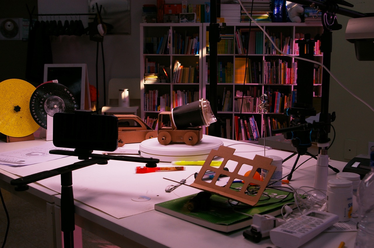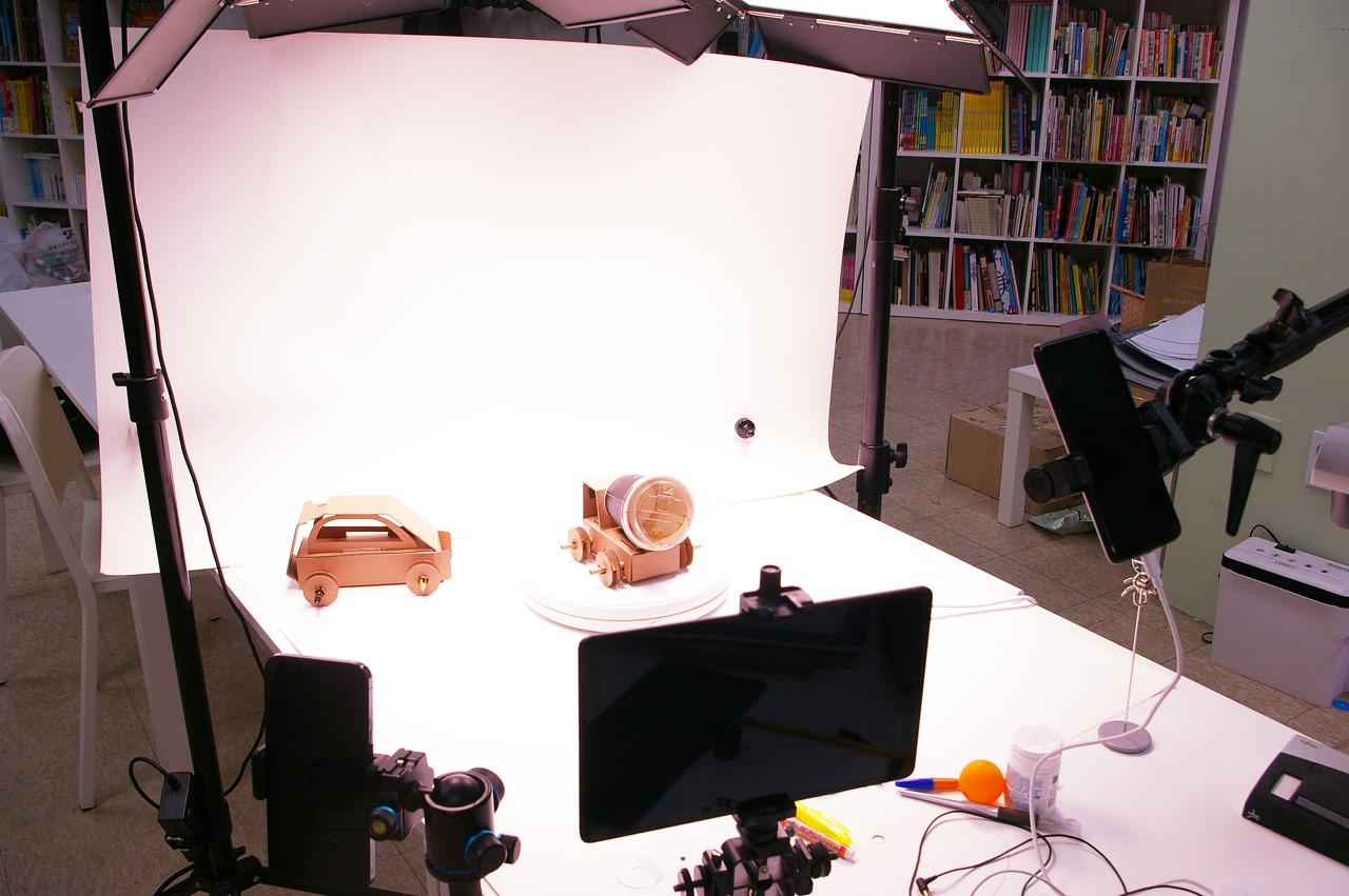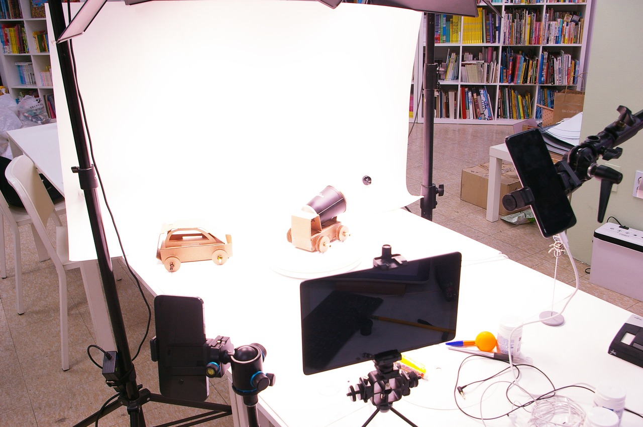 카메라를 늘어놓고 찍을 수 있게 만들었습니다. 앞으로 책을 회전시키는 것과 아크릴을 활용하여 영상을 촬영해볼 생각입니다.