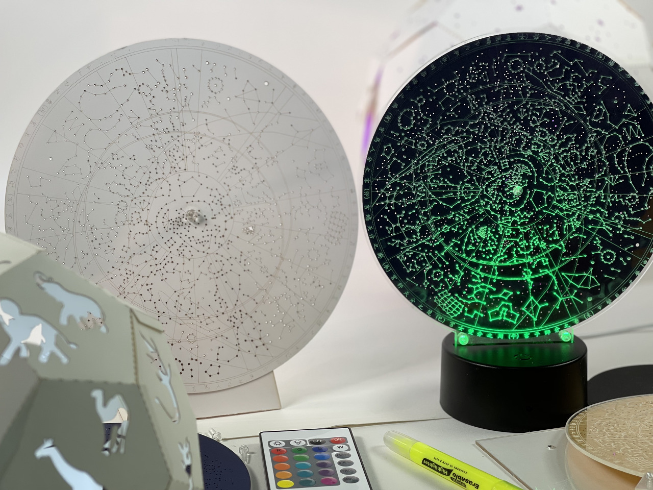 뒷면에 보이는 축구공모양의 별자리 조명이 이 프로젝트의 시작이었습니다. 올해는 별자리 스토리와 스마트폰 조명으로 빛을 투과하는 별자리 모양 카드를 함께 작업하면 마무리 될 것같습니다.