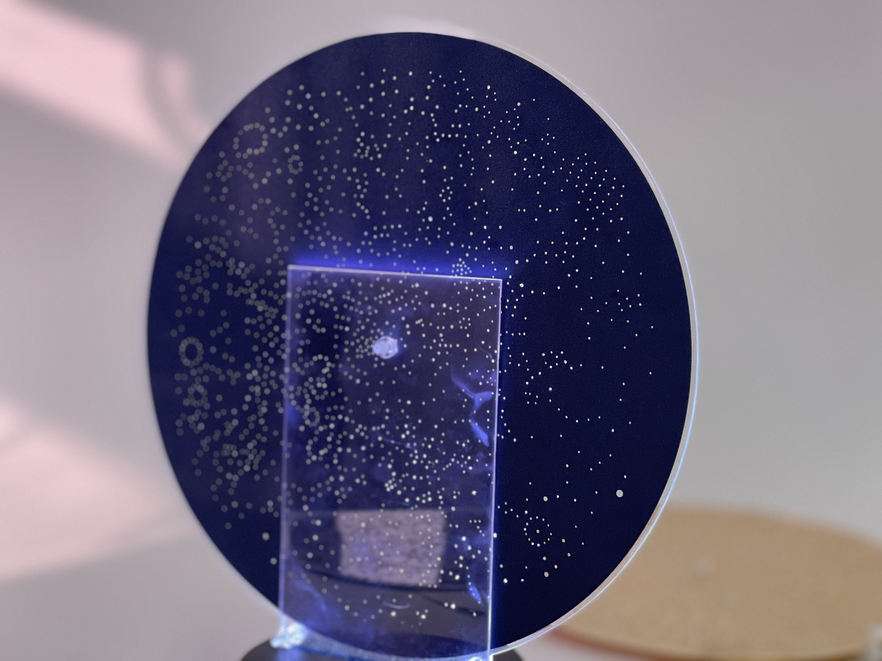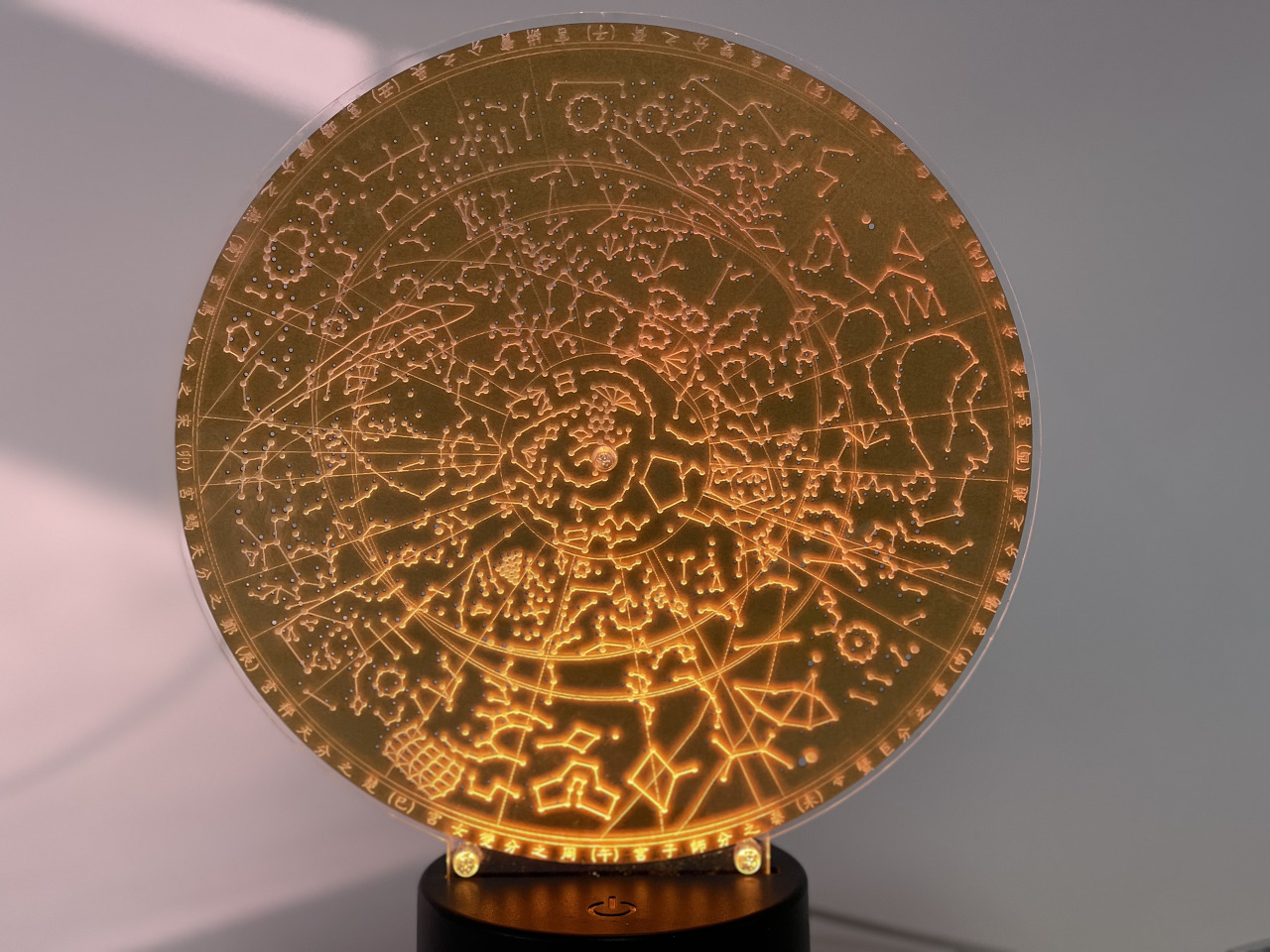 뒷면에 볼트가 채결되어 휠이 움직일 수 있게 구성했습니다. 레이저로 별자리를 별의 밝기별로 커팅해서 아름답게 보입니다.