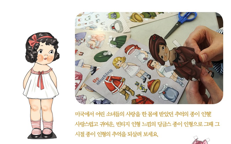 조심조심 가위로 오리고, 정성들여 풀을 붙여 만들었던 그때 그 시절의 종이 인형은 아릿한 기억 속에 남아 있을 것입니다. 지금 보면 사실 조악한 인쇄 품질에 촌스러운 이미지의 인형들이었지만 그땐 왜 그리 예뻐 보였을까요?