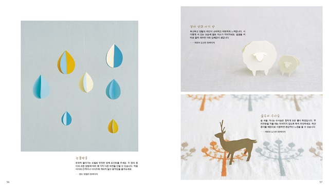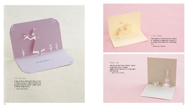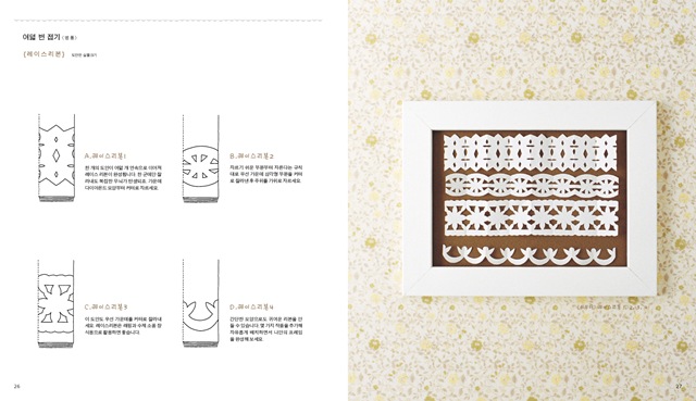 은 도안이 아주 복잡하지도 않고 비교적 쉬워 초보자도 부담 없이 페이퍼 커팅 아트 세계에 입문할 수 있습니다. 종이 자르기의 기본 요령부터 여러 번 접어 만들 수 있는 응용 작품까지 담았기 때문에 숙련자에게도 좋은 교재가 될 수 있답니다.