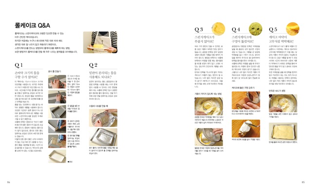 는 스펀지케이크 굽기나 롤 말기를 어려워하는 분들을 위해서 각 단계별로 사진과 함께 자세한 설명을 담고 있어 초보자도 쉽게 도전할 수 있어요. 또한 앙증맞은 사이즈에 어울리는 선물 포장법과 남은 재료와 스펀지케이크를 활용해 만들 수 있는 여러 가지 디저트 레시피들도 소개되어 있어요. 무엇보다 권말에 수록된 롤케이크 Q&A에서는 롤케이크 초보자들이 쉽게 실패하는 원인과 궁금한 점들을 알기 쉽게 해설합니다.