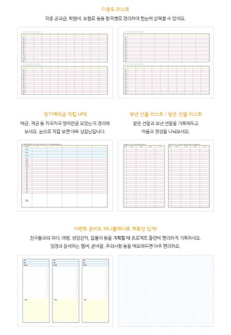 권말에 가족 모임이나 친구들과의 파티, 여행, 생일잔치, 집들이 등을 계획할 때 편리한 프로젝트 기록 칸을 추가했습니다. 일정과 참석하는 멤버, 준비물, 주의사항 등을 메모해두고 편리하게 활용해 보세요.