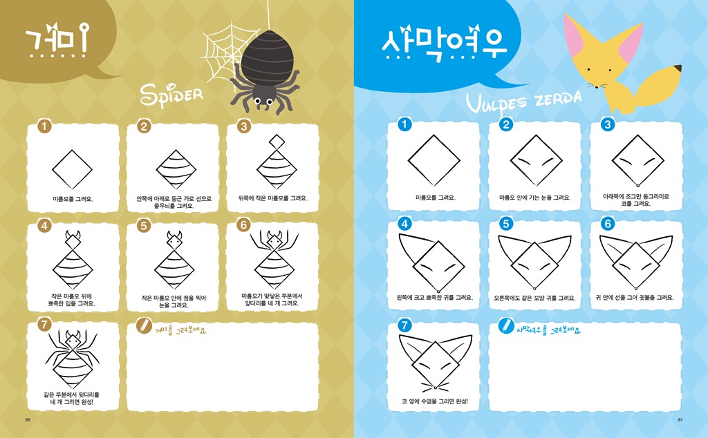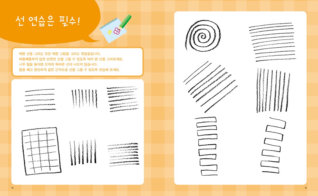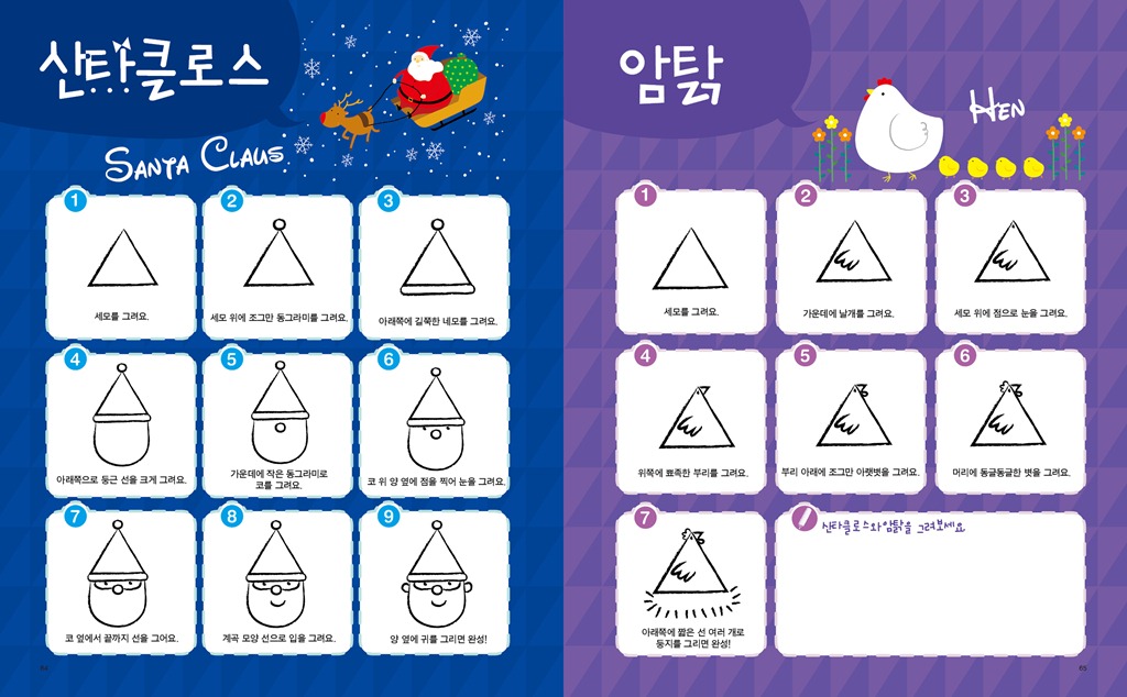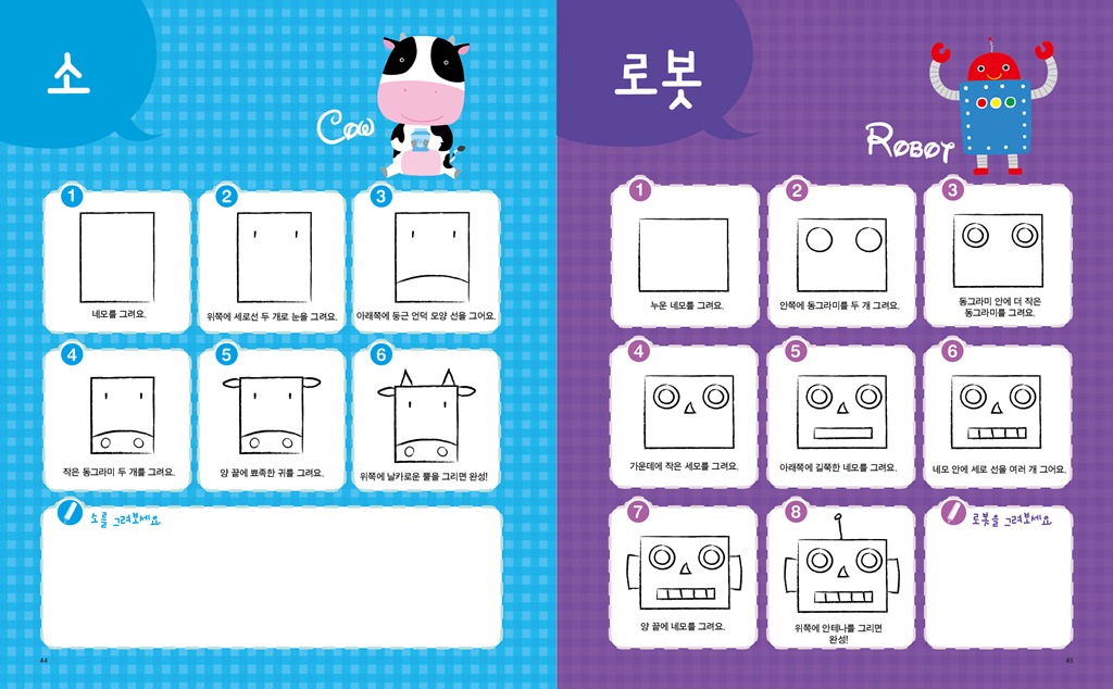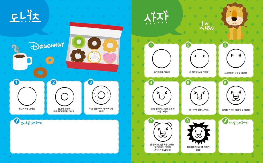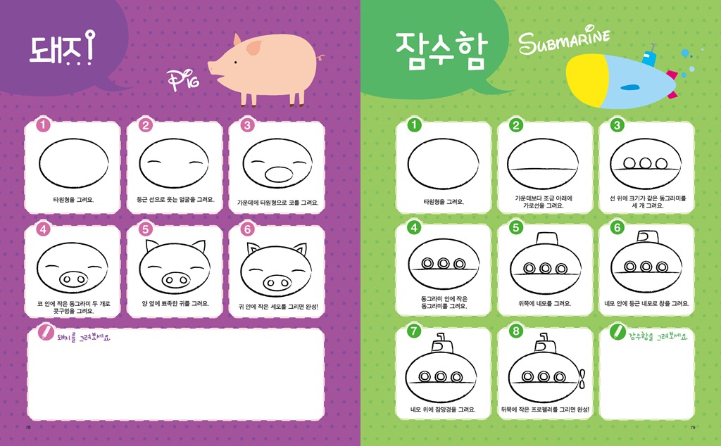 도형으로 그리는 즐거운 그림교실 위기경영표지.indd 제 목 : 도형으로 그리는 즐거운 그림교실 저 자 : 김재현, 김혜라 펴낸 곳 : 아르고나인 판 형 : 210x260 면 수 : 104p 발행일 : 2011년 7월 5일 정 가 : 8,800원(그림카드 부록 포함) I S B N : 978-89-93497-95-3 13650 978-89-93497-94-6 세트번호 ------------------------------------------------------------------------ 1. 책 소개 그림 실력 UP! 창의력 UP! 감성 UP! 도형만 알면 누구나 따라 그릴 수 있는 마법 같은 그림교실! 어린이들은 그림을 통해 자신들의 개성을 반영하고, 느낌을 표현한다. 또한 그림으로 자신들의 환경이나 세계, 그리고 자기 자신과 의사소통을 한다. 때문에 아이들에게 있어 그림은 단순히 미술이란 과목을 배우는 일이 아닌 아표현의 수단을 습득하는 것과 같다고 할 수 있다. 인간학습의 80%는 시각을 통해서 이루어진다고 한다. 아이슈타인이 언어발달의 지연 때문에 모든 관념들을 구체적으로 그려서 생각하는, 시각적 사고를 통해 큰 업적을 이룬 것은 많이 알려진 사실이다. 그림은 아이들의 창의력과 감성을 향상시켜주는 최상의 교육적 활동이다. 아이들의 창의력은 주로 5~10세 사이에 발달이 이뤄진다는 연구 결과가 있는 만큼 이 시기에 <도형으로 그리는 즐거운 그림교실>을 교재로 활용하면 좋은 성과를 얻을 수 있을 것이다. 또한 그림을 그리기 위해선 손가락을 사용하게 되는데, 손가락 사용은 뇌를 자극하여 두뇌 발달을 좋게 만드는 효과가 있다. 자신감과 감성, 표현력 증진은 저절로 따라오는 부록과도 같은 선물. 다섯 가지 도형으로 무엇이든 그릴 수 있는 신기한 그림책! 그런데 그림을 그리다보면 잘 그리는 아이와 그렇지 못한 아이로 나뉘게 된다. 그림을 못 그리게 되면 흥미를 잃게 되고 결국에는 싫증을 내며 손을 떼게 된다. 어떻게 하면 우리 아이가 즐겁게 그림을 배우고 실력을 키울 수 있을까? <도형으로 그리는 즐거운 그림교실>은 이런 질문에 대한 해법이 될 수 있는 책으로 다섯 가지 도형(동그라미, 네모, 세모, 타원, 마름모)으로 무엇이든 그릴 수 있게끔 만들어 준다. 동그라미, 네모, 세모, 타원, 마름모를 그릴 줄만 안다며 이들 도형을 이용해 곰, 고양이, 코끼리, 악어. 하마. 버스, 카메라, 장수풍뎅이, 우주로켓, 요트, 산타클로스, 문어 잠수함 등 어떤 것이든 그릴 수 있게 되는 것이다. 그것도 아주 귀엽고 예쁘게 말이다. <도형으로 그리는 즐거운 그림교실>을 넘기며 따라 그리다보면 어느새 그림에 대한 자신감이 붙으며 실력 또한 쑥쑥 성장하는 것을 느낄 수 있다. 기초 실력이 붙으면 응용은 자연스럽게 넘어가는 순서. 이제 아이는 자신 있게 그림으로 자신의 세계를 얼마든지 표현할 수 있을 것이다. 또 <도형으로 그리는 즐거운 그림교실>엔 다섯 가지 도형이 들어간 그림카드가 부록으로 제공되니 맘껏 솜씨를 뽐내도록 하자! 2. 본문 보기 44-45 64-65 78-79 86-87 96-97 018-019 30-31 그림교실01권부록카드4그림교실01권부록카드 그림교실01권부록카드2 그림교실01권부록카드3   3. 목차 두뇌를 발달시키는 그림 그리기 1장 그림을 그리기 전에 알아야 할 것들 그림을 그리기 위한 준비물 점과 선, 그리고 면 기본 도형 쉽게 그리기 2장 동그라미 그림을 그리자 곰/고양이/코끼리/판다/도너츠/사자/팬지꽃/롤리팝/눈사람/사탕/달팽이/금붕어/복어/물 항아리 3장 네모 그림을 그리자 하마/악어/소/로봇/텔레비전/강아지/장수풍뎅이/우주로켓/낚싯배/방패연/버스/냄비/도깨비/카메라 4장 세모 그림을 그리자 요트/수박/여우/이동식천막/나비/불도저/산타클로스/암탉/오징어/크리스마스트리/소프트콘/칵테일/모래시계/샌드위치 5장 타원형 그림을 그리자 붕어/문어/조개/꽃게/돼지/잠수함 6장 마름모 그림을 그리자 개구리/가오리연/열대어/장미꽃/거미/사막여우 7장 여기저기에 그려보자 숲/도시/농촌/바다/공원 4. 저자 소개 저자 | 김재현 만화 기획 및 편집자이자 만화가까지 겸하는 특이한 이력의 소유자. 분야에 상관없이 재미있는 것을 발견하고 만들고 나누기를 좋아해 분야를 초월한 작업을 선호한다. 집에서 직접 볶은 커피와 한가하게 자전거 타기가 취미. 저서로는 <루디's 커피의 세계 세계의 커피 시리즈>와 <커피 브레이크 스도쿠>, <그림 스도쿠>의 삽화를 맡았다. 저자 | 김혜라 아기자기한 물건과 여자아이를 그리는 것을 좋아하는 일러스트레이터. 만화를 전공하고 프리랜서 일러스트레이터로 활동, KBS에서 방영하는 TV동화 행복한세상 애니메이션 제작에 참여하기도 했다. 좋아하는 야구팀의 경기가 있는 날에는 가슴이 설레이는 야구광이자 해가 맑은 날에는 사진기를 챙기는 아마추어 사진광.   즐거운 그림교실 1 기초편|8800 |9788993497953 |