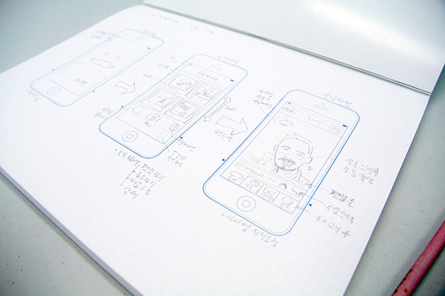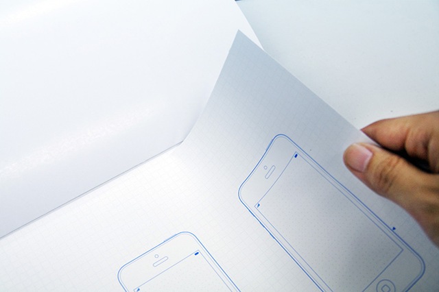 UX|Bézier Design의 첫번째 UX시리즈 – 아이폰5 스케치북 출시하였습니다.   스케치북을 표방하고 있으며 330mmX255mm 사이즈에 50mm 간격의 격자로 만들어졌습니다. 모두 청색으로 인쇄되었으며 뒷장은 인쇄가 없는 상태입니다.   미싱제본으로 상철 부분을 잘라서 워크샵이나 개발 진행상황판에 붙여 함께 보면서 작업진행을 알아 볼 수 있도록 디자인 하였습니다. 판매가격은 10,800원 96페이지로 다음주에는 UX시리즈02 아이폰5 링제본 노트가 함께 나올 예정입니다.   001 006 007 008 009 010 002 004   10x10에서 판매중 http://10x10.co.kr/event/eventmain.asp?eventid=37757