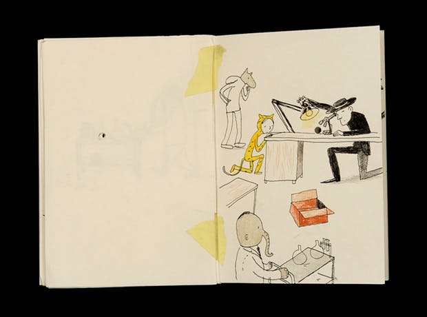 구멍 뚫린 스케치북을 많이 제작한 다음 시퀀스를 조합하거나 새로운 그림을 추가한 다음 시퀀스를 스토리로 전환하는 등 큐레이션 작업을 했습니다.