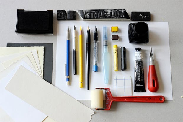 어이빈드 토세테르는 수작업과 종이공작, 디자인작업을 함께 하며 그가 사랑하는 도구는 다음과 같습니다. 만년필, 잉크, 아크릴, 부드러운 파스텔, 수채화 물감, 잉크 패드, 지우개로 만든 수제 우표, 칼, 왁스 크레용, 마스킹 필름 및 여러 종류의 용지를 사용합니다.