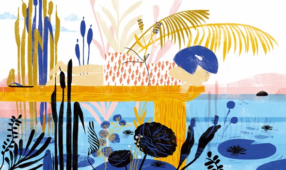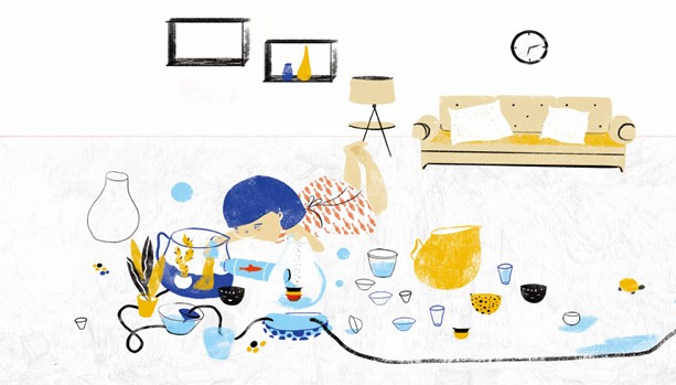 일러스트레이터 신시아 알론소의 무의미한 그림책 무대는 발견, 실험, 이별의 과정에서 어린 시절의 상상력을 자극합니다. 가까운 강을 방문한 어린 소녀는 빨간 물고기에 반합니다. 물고기 세계에 빠져들고 싶어 자신의 꿈을 실현시키고자 물고기를 잡아 집으로 돌아옵니다. 그리고 다양한 주전자, 안경, 그릇 및 작은 몸을 담글 수 있는 수영장을 사용하여 그녀는 집 전체에 정교한 수족관을 만듭니다. 마침내 물고기와 함께 수영장에 들어간 그녀는, 이곳이 물고기를 위한 세상이 아니라는 것을 깨닫고 마음이 아프고 아쉽지만 물고기를 다시 강으로 되돌려 놓는 어려운 결정을 내립니다.