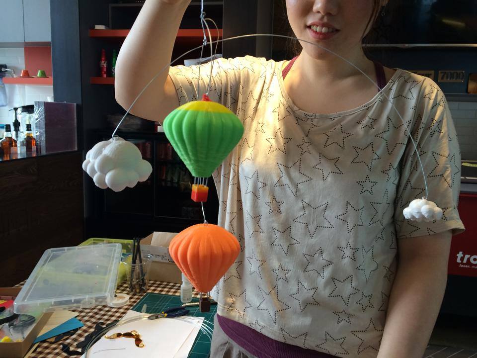 3D프린터로 뽑은 열기구와 구름 모빌... 실제로 보면 에어컨 바람에 두둥실 ^^
