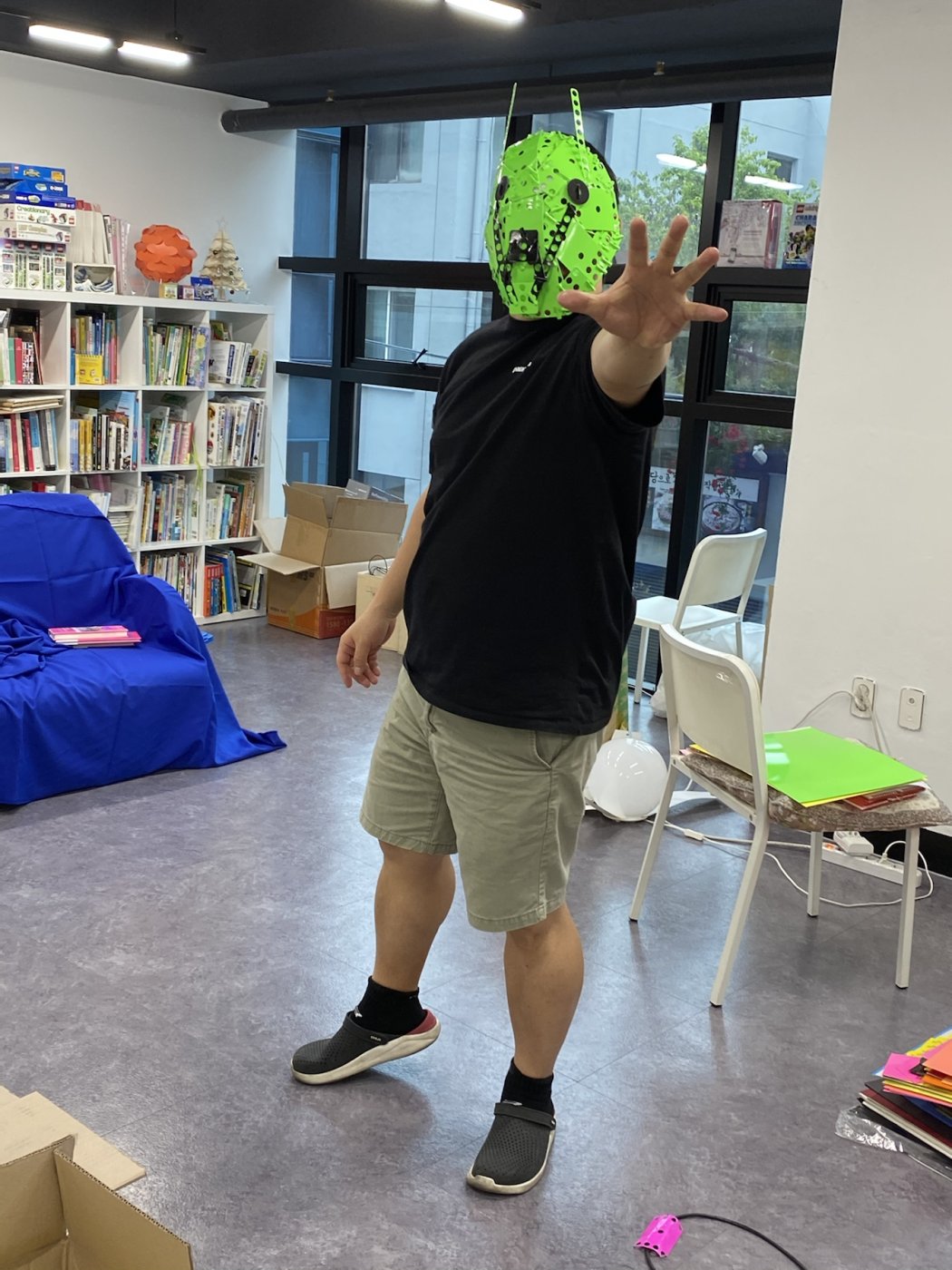 메뚜기 마스크 크로마키로 투명하게 만들 생각으로 로봇을 만들어볼 예정입니다.