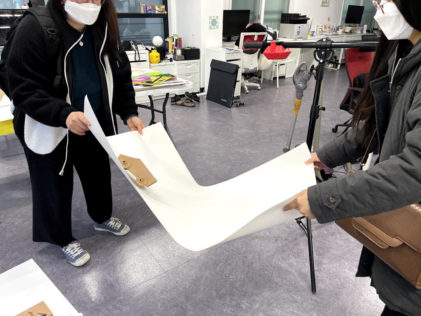 작업은 박스로 되어있지만 상품은 컬러링이 가능한 스케치북형태의 용지를 배접할 예정입니다.
