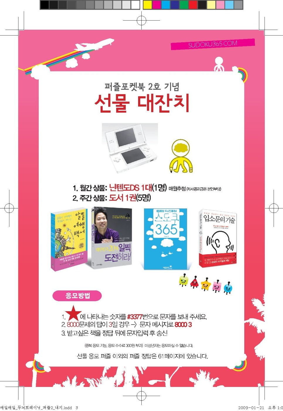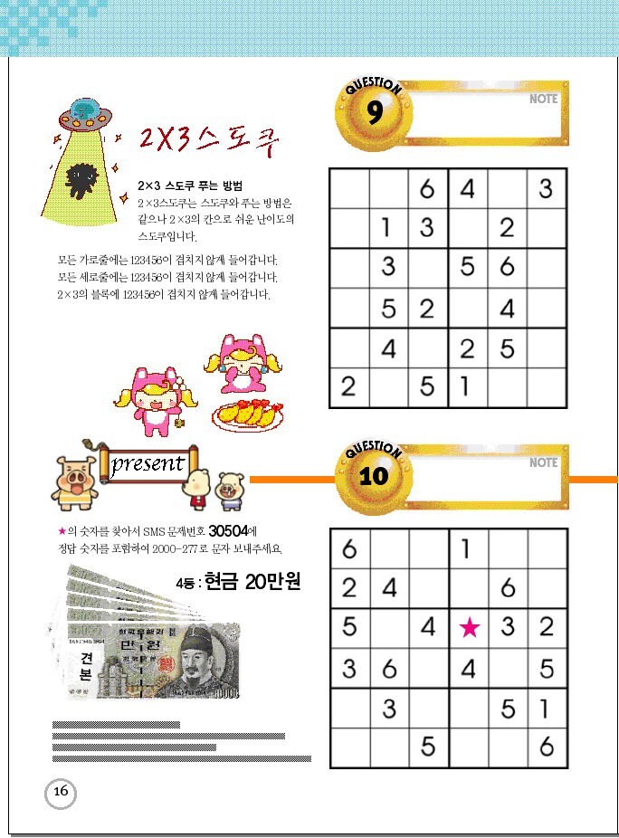 1. 퍼즐잡지 2. 로또스도쿠 3. 경품 4. 출판 5. 게임기다시지난퍼즐잡지를