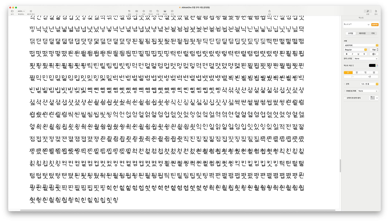 이렇게 적은 글자의 구성으로 한글폰트를 만들었고 영문은 영문 전체, 일본어도 전체가 있어 그대로 그려봤습니다.