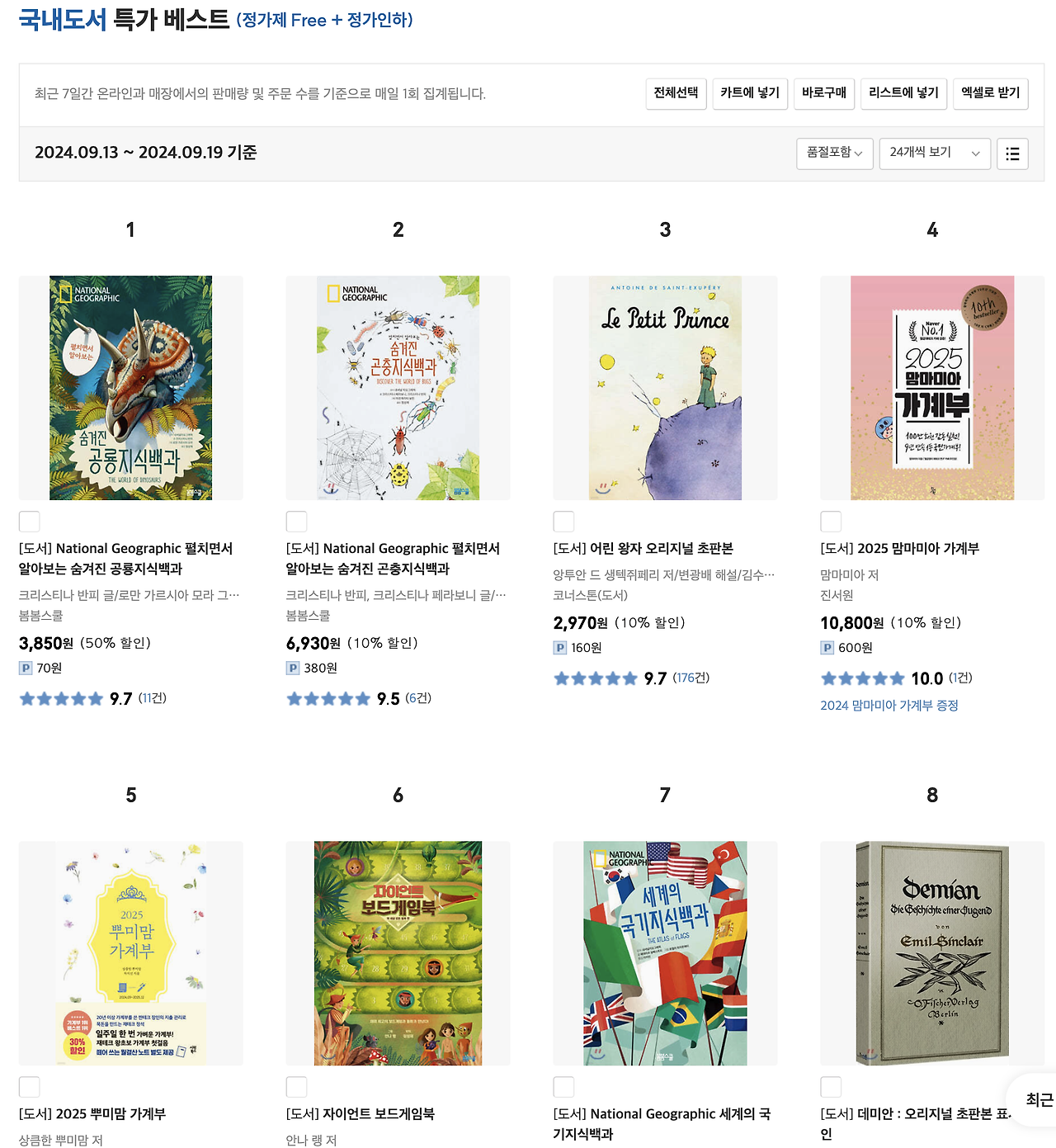 추석끝나고 Yes24 정가제프리 도서 1, 2, 6, 7 위 이외에도 수없이 많이 올랐습니다.
