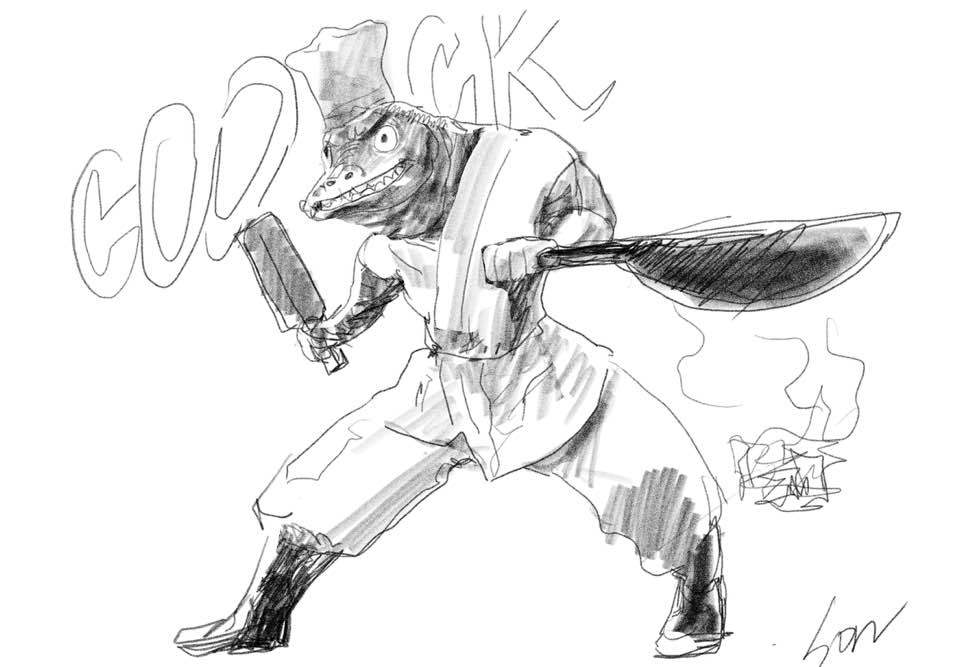 그랬더니 잘 그려줍니다. 손도 그렇고 웍도 그렇고 그래서 만화의 기술은 졸라맨에서 그래도 조금 나아지는 정도면 되는 러프한 스케치의 기술만 있으면 됩니다. 없다면? 사진을 붙여서 짜깁기 하는게 더 낫겠죠?